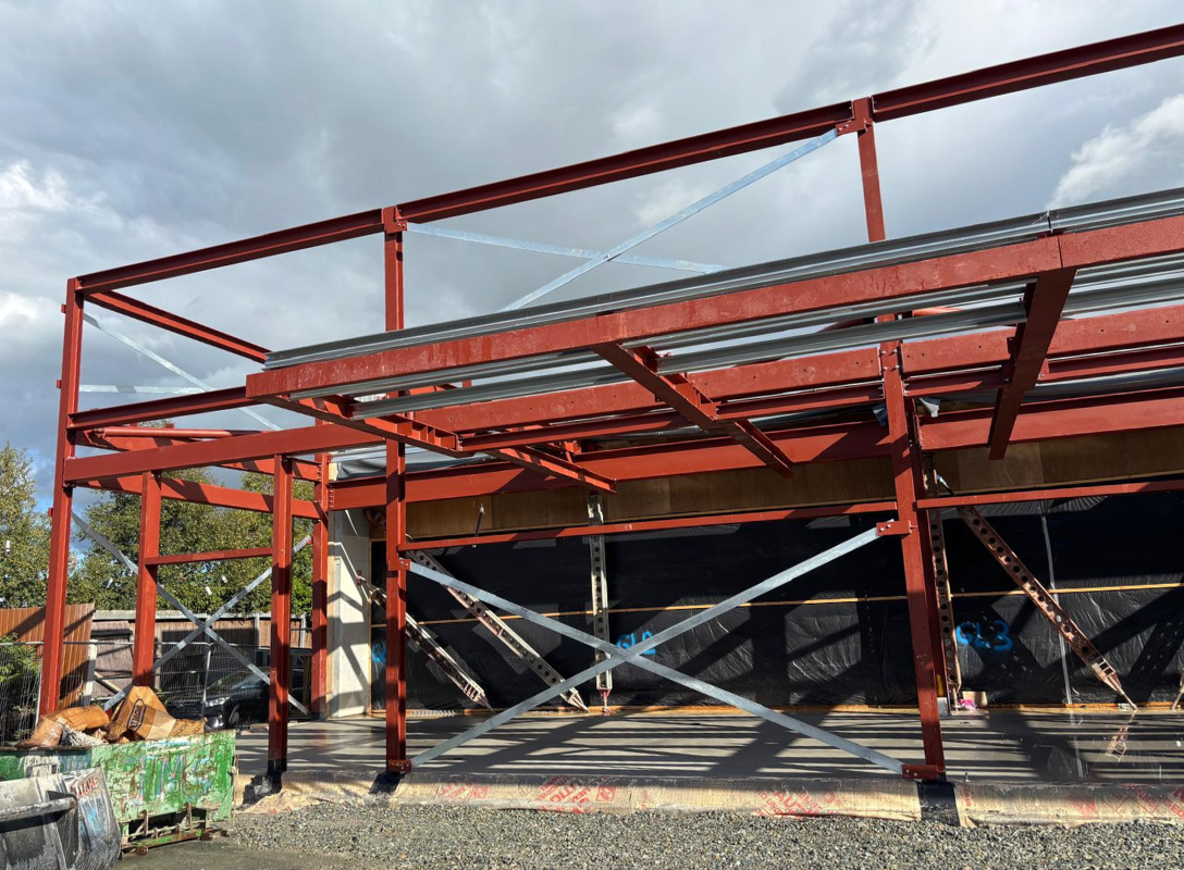 A photo of the structural steel from McMenamin Engineering supplied for the extension on the Aldi Naas store.